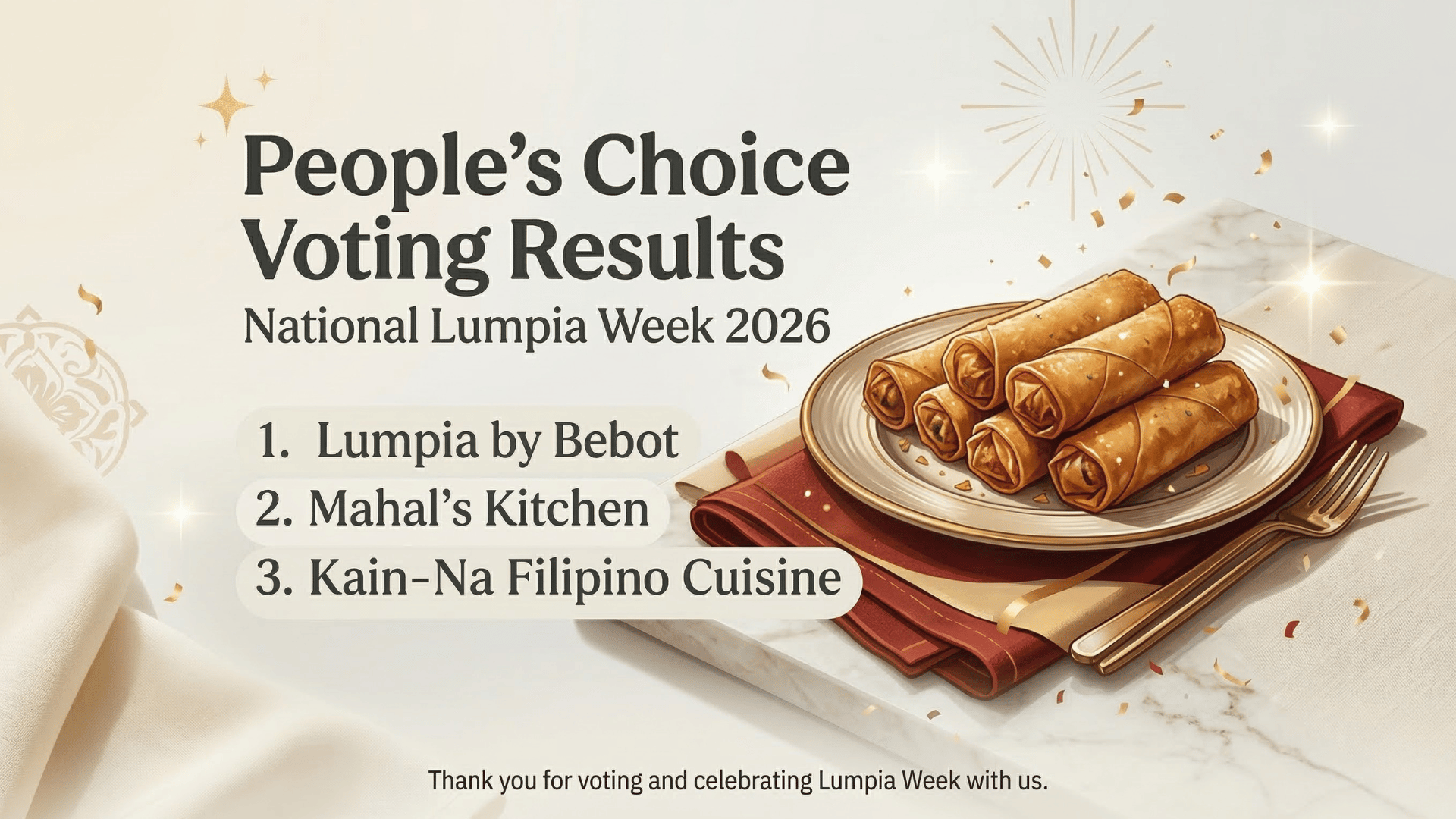 Thank you for being part of Lumpia Week and earning the support of so many voters.